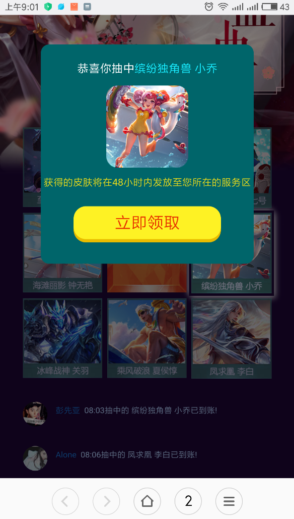 5.好了,我已经抽到了,这时候就需要领取了,当我们点击领取会出现一个看似很正常的腾讯游戏登陆界面。